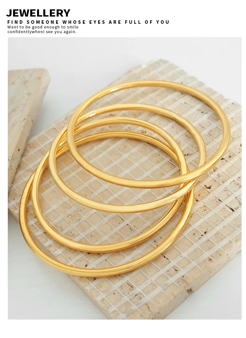 Upgrade your jewelry collection with this set of 3 non-fading Stainless Steel Bangles. Designed in a simple yet elegant style, these gold-plated bracelets are waterproof, tarnish-resistant, and perfect for daily wear. Their classic round design makes them versatile enough to match with both casual and formal outfits.