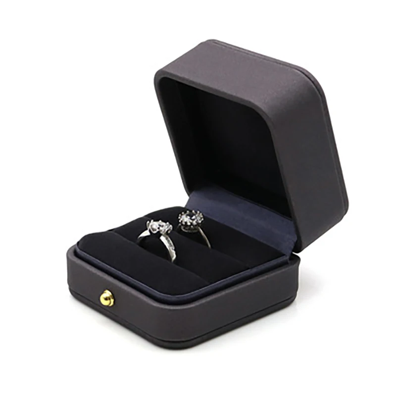Vintage Double Slots Ring Jewelry Box – PU Leather Storage Case for Wedding, Engagement, & Gift